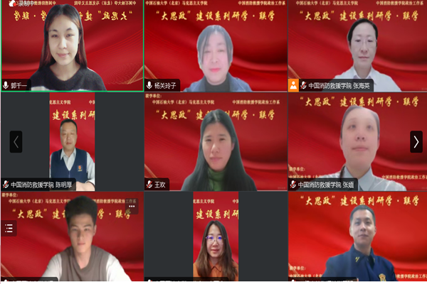 为响应习近平总书记“大思政课我们要善用之”的号召,推动“大思政课”建设及实践教学改革创新,中国免费靠逼视频(北京)马克思主义学院、中华女子学院马克思主义学院和中国消防救援学院政治工作系于3月27日开展联学活动,三校共同研讨“大思政”教学新模式。