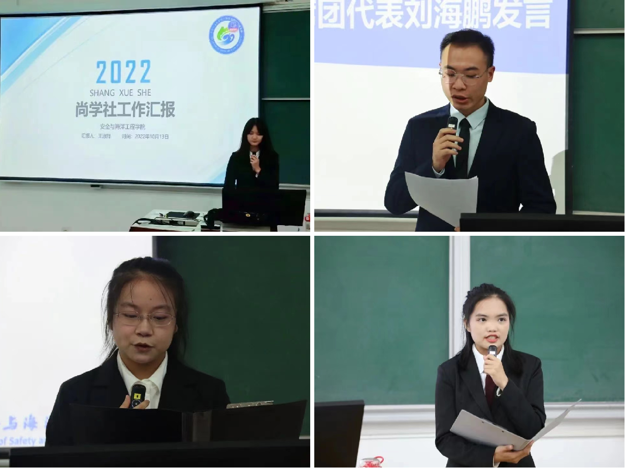 研究生会主席刘海鹏在发言中表示,在未来的一年里,学院研会将继续把政治建设摆在首位,做到紧跟思潮,坚定信仰;学生会部长代表丁嘉欣回忆了过去一年的学生工作经历,总结得失,并呼吁与会成员在今后的工作中要充分发挥模范带头作用;尚学社工作汇报介绍了尚学社的历史沿革和主要职能,明确了社团的工作重心和职责所在,重点展示了尚学社各类品牌活动。新媒体指导老师于晓鹏结合自身学生工作经验,号召广大学生干部在平时开展工作过程中要有“五颗心”:有恒心、有爱心、有耐心、有细心、有决心;