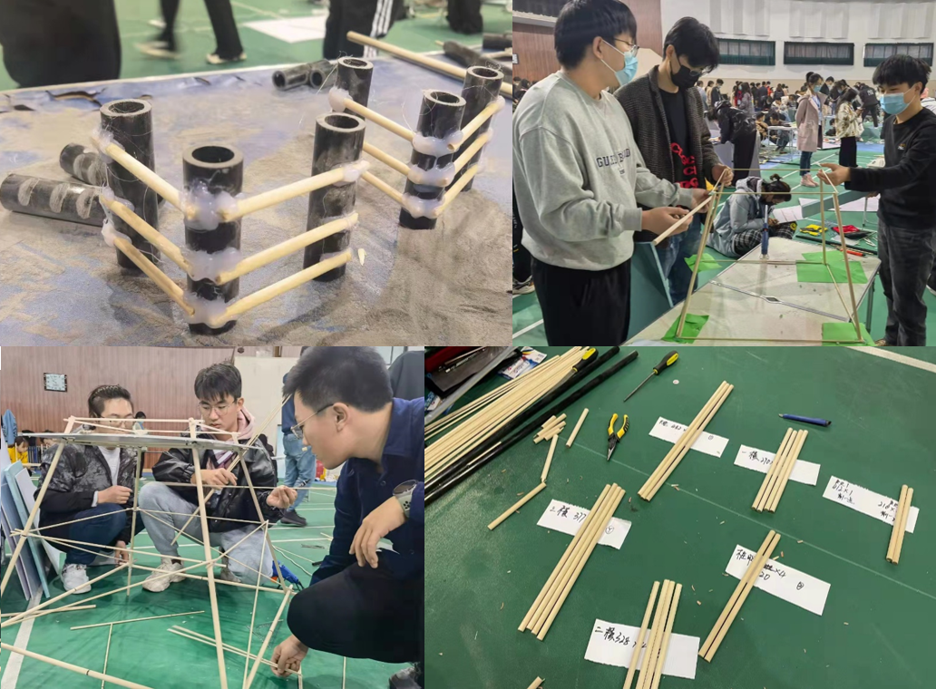 11月21日上午,大赛模型制作环节在体育馆顺利开展。各组选手分工明确,按照各组的设计理念,打磨导管架部件并组装好自己的模型,充分展现了各位选手所掌握的专业知识。制作环节完毕后,评委带领工作人员对各队模型进行载荷测试,测得沙土下沉距离、前后倾角等数据,针对测试模型的稳定性、承载能力和实用性等方面进行科学考量。