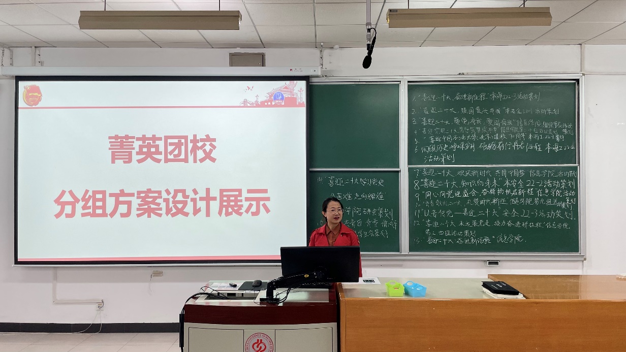 以“青视角”开展“青学习”。为增强基层组织活力,创新团日活动方式,团校组织各参训团员分组开展“喜迎党的二十大”主题团日活动方案设计及展示互动。各小组将方案设计做成海报进行展示汇报,结合专业特点和年级特色,分别计划开展“重走长征路”“知识竞答”“志愿我先行”“争做青年榜样”等形式丰富团日活动,同时将青年爱国主义、五四精神传承、战疫故事等融入到主题团课中,不断提升团组织的引领力、组织力和服务力,激发青年活力,以优异成绩献礼党的二十大胜利召开!