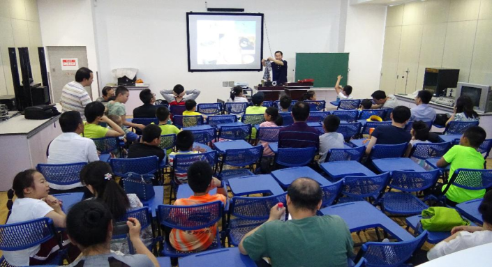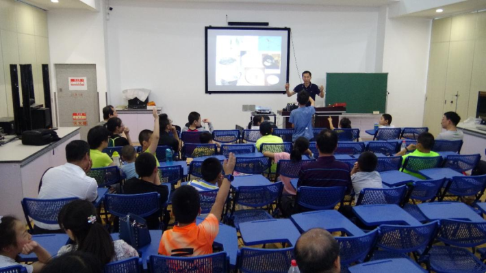 活动分为科普主题讲座和科普基地参观两大部分。科普主题讲座由我校理学院张万松教授负责讲授。讲座过程中,张教授为学生们表演了多项科学魔术,内容丰富,趣味十足。教工子女们积极踊跃的参与到互动中来,明白了诸多魔术背后的科学奥秘。一个个有趣的魔幻现象不仅使小朋友们兴高采烈,家长们也看得津津有味,纷纷称道科学的神奇魔力。