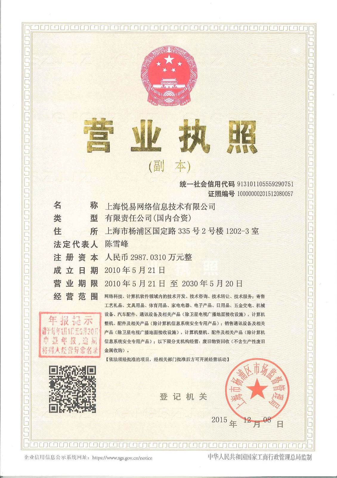 > 上海悦易网络信息技术有限公司(爱回收网)