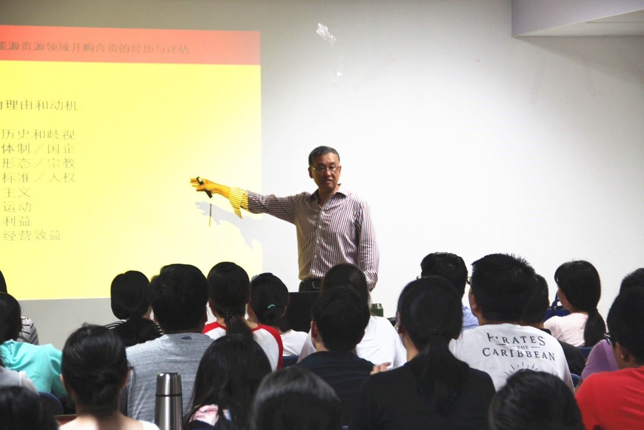 在“中国企业在加拿大能源资源领域并购合资的经历与评估”的学术报告中,姜闻然教授首先从历史的角度回顾了中加关系整体情况,其次分析了加拿大在世界能源市场中的地位,然后举例说明中国在加能源资源领域的投资进程以及加拿大对中国投资的反应和辩论,最后总结出中国“走出去”战略在加拿大的反思与评估。姜教授就“‘走出去’战略如何定位?海外收购并购合资的基本原则是什么?怎样和当地政府、企业、媒体对接?”等一系列问题与在场学生进行热烈讨论。