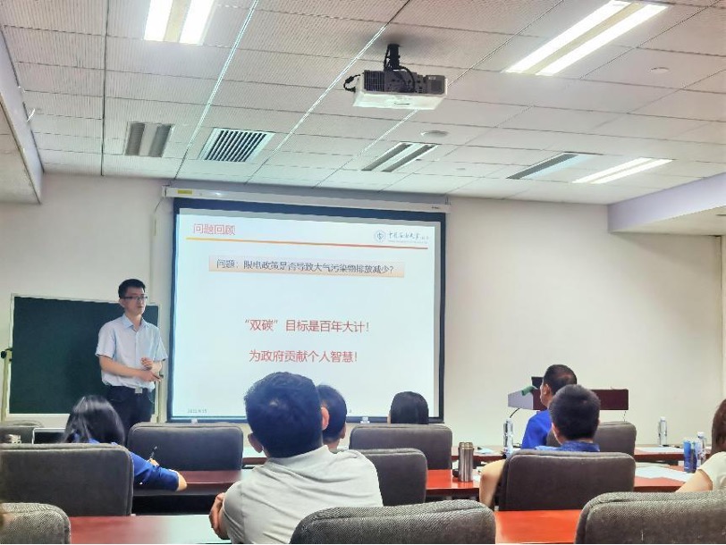 高立展示的课程题目为《双重差分模型》,首先以国家的限电政策为背景引出课堂教学提纲,通过探讨“垃圾焚烧厂区位对房价的影响”案例展开教学内容,讲解双重差分模型的相关定义、理论假设和模型设定,逻辑清晰,层层递进。