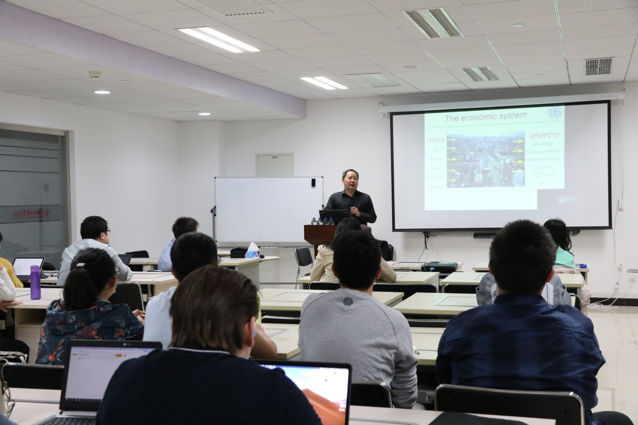 耿涌通过生活实例,在经济学研究中引入了科学决策的概念,并以一个城市为例介绍了经济系统的成本、利益和影响,阐明了“碳排放”是目前全球经济运行的约束条件。他讲解了循环经济的四种主要的评价方法的演变过程,指出了这四种评价方法存在的缺点,介绍了能值测度的概念和方法以及能值测度过程中的关键问题,分享了其团队关于循环经济的研究成果。耿涌和现场师生对循环经济的相关问题进行了热烈的讨论,解答了师生们关于循环经济的疑问。