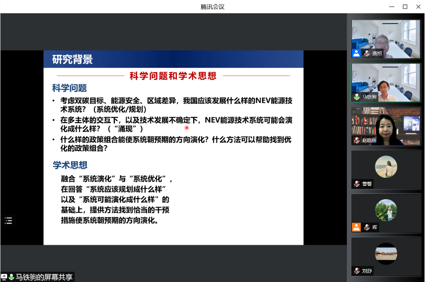 6月23日下午,经济管理学院在线举办“春华论坛”第十二期学术报告会,华东理工大学商学院院长、国家杰青、长江学者特聘教授马铁驹老师应邀进行了题为“面向碳中和的新能源汽车能源平准化成本研究”的学术报告。报告会由唐旭院长主持,八十余名师生在线参与会议。