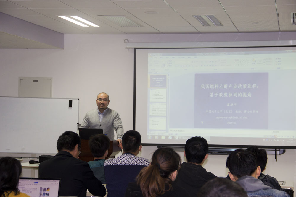 10月23日上午,我院于主楼B1318会议室举办以“我国燃料乙醇产业政策选择:基于政策协同的视角”为主题的讲座,中国地质大学(北京)经济管理学院公共管理系主任葛建平教授担任主讲人,讲座由管理科学与工程系副主任王建良副教授主持,五十余名师生聆听了讲座。