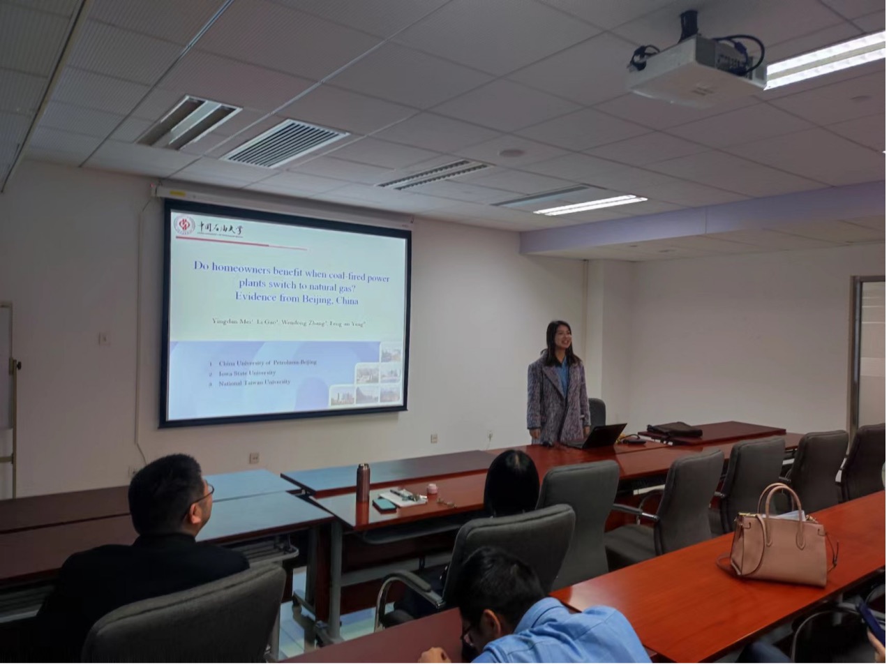 梅老师的论文首次对火电厂“煤改气”的环境和经济效益进行了因果关系的识别。基于2011年到2015年北京市房地产交易大数据和北京市火电厂“煤改气”信息,论文首先采用半参数估计方法精确识别了电厂对周边房屋的影响边界,并利用三重差分(Triple Differences)模型,即燃煤电厂与“煤改气”电厂(control versus treat)、靠近电厂与远离电厂(near versus far)、“煤改气”政策前与政策后(pre versus post)的三个层面对比,有利地克服了现有政策分析中普遍存在的因趋势不一致导致的遗漏变量问题。此外,梅老师还分享了论文写作之外的经验,诸如合作者的选择、数据的获取与处理、选题心得、研究构思与方案设计等。特别是,她讲述了从选题到发表的4年里发生在论文背后的故事,让人真切地感受到从成文,到退稿,再到反复打磨和一次次修改,直到最终录用的过程中,她所经历的艰辛,到场师生深受鼓舞和启发。参会师生与梅应丹老师就讲座内容等进行了广泛的交流和讨论,现场气氛十分热烈。