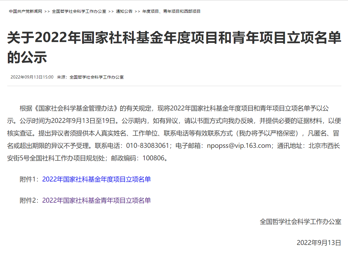 链接:关于2022年国家社科基金年度项目和青年项目立项名单的公示