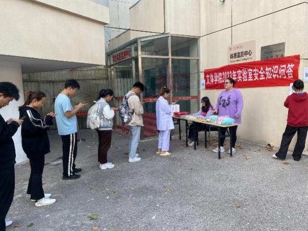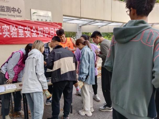 活动现场,同学们热情高涨,积极参与问答活动。活动中,工作人员围绕实验室安全的应急处理措施及体质测试工作的测试项目、安全注意事项等方面进行了详细的讲解。