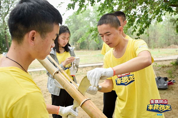 赛前,石大组织了面向全校学生的预选赛,学生自由组队报名参赛,每队至少有一名女生。通过校内选拔后,组建了由5名学生组成的“石大利剑”队参加“来挑战吧”首都大学生户外挑战赛总决赛。总决赛分为晋级赛、复活赛、冠军赛三个环节,共有来自京津冀港、在京留学生以及韩国的35支大学生代表队参赛。在35进7环节中,高校参赛队抽签决定分组,每组7支队伍,通过积分制,小组第一名晋级冠军赛,小组第二名晋级复活赛。“石大利剑”代表队通过挑战攻防箭竞技场、极限飞盘竞技场、旱地冰球竞技场、营地搭建竞技场、户外综合竞技场,历时一天半,展开智能与体能的较量,展现出团结一心、不畏艰辛的石油精神,最终获得小组第三的成绩。