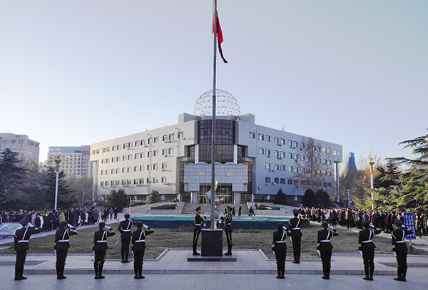 12月9日,石大举行纪念“一二·九”运动83周年升旗仪式,近1000名师生参加了升旗仪式。