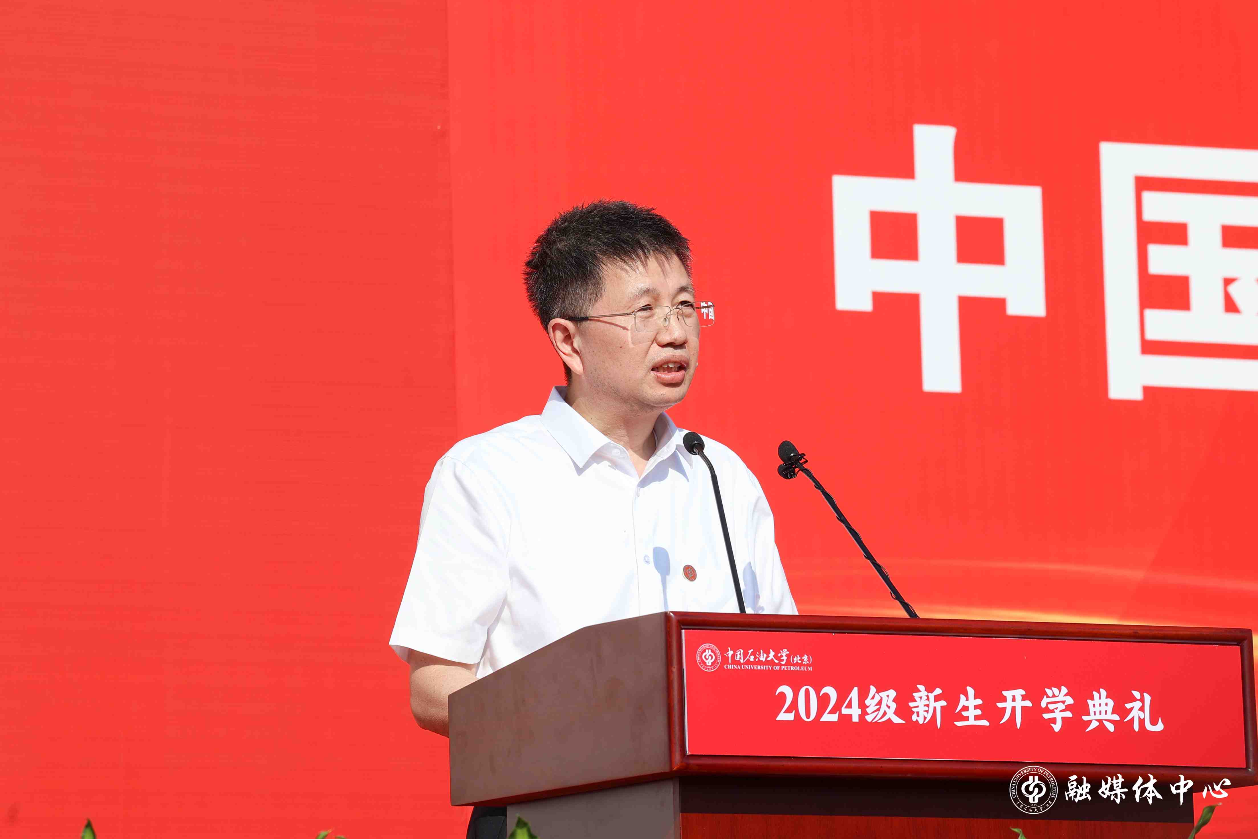 校长金衍在讲话中,以一名在中石大学习工作了34年的学长身份,与新生们共同探讨了两个问题:“为什么选择中国免费靠逼视频?你们想在这里收获什么?”他分享了自己对这两个问题的理解与体会。他指出,能源是一个国家的发展之基、生存之本、命脉所在,石油天然气是当今世界最为主要的能源和资源,事关国家能源安全。中国免费靠逼视频因油而生、与油共进,办学70余年来,培养了30余万优秀专门人才,是一所让我们国家从一个“贫油国”发展成为世界石油石化大国的功勋学校。随着油气勘探开发全面进入深层、深水、非常规,百年油田、万米深度、纳米尺度三个维度的科学与工程新领域,迫切需要大家去探索去创新。新一轮科技革命和产业变革改变了传统的生产方式,以绿色、低碳、智能等为特征的新质生产力加速形成,对能源领域高等教育提出新的科技和人才需求。青年学子们处于能源转型和科技创新发展的关键时期,必将大有可为、大有作为。在中石大,无论选择什么专业方向,都可以通过持续的深耕和创新探索,取得不凡成绩。