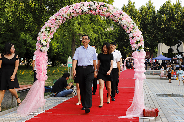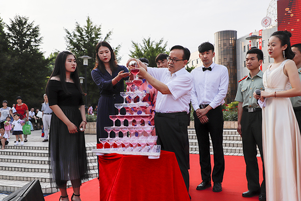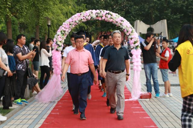 张来斌与毕业生代表同走红毯,并为同学们送上真诚祝福和殷殷期望。他说,送同学们毕业离校的心情,既充满骄傲和自豪,又夹杂着酸楚与惦记,期盼同学们未来人生美满,常回家看看,愿毕业生志存高远,一路豪情满怀,脚踏实地,一路繁花似锦,心怀感恩,一路欢乐幸福。随后,他斟满香槟塔,祝贺毕业生与母校共同进步,祝福同学们展万里鸿图,谱时代新篇。