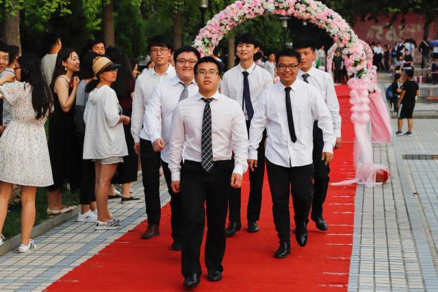 红毯礼共分为师生篇、榜样篇、特别篇、友情篇和爱情篇五个篇章。在师生篇中,各学院(研究院)负责人、教师代表携毕业生走上红毯,送上临别赠言,送去满满祝福;在榜样篇中,优秀社团代表、学霸宿舍代表、参军退伍毕业生等走上红毯,展现榜样力量,诠释向上青春;在特别篇中,父母亲人、宿舍管理人员、保卫人员、食堂师傅等走上红毯,用殷殷关怀告别毕业生;在友情篇中,闺蜜兄弟、寝室室友、实验室同窗共同走过红毯,不舍美好时光,将深厚情谊留在彼此心中;在爱情篇中,在石大相知、相识、相爱、相伴的毕业生情侣们走过红毯,尽显校园爱情的甜蜜和浪漫。来自中央财经大学、华北电力大学、北京林业大学等兄弟高校的嘉宾共同观礼。