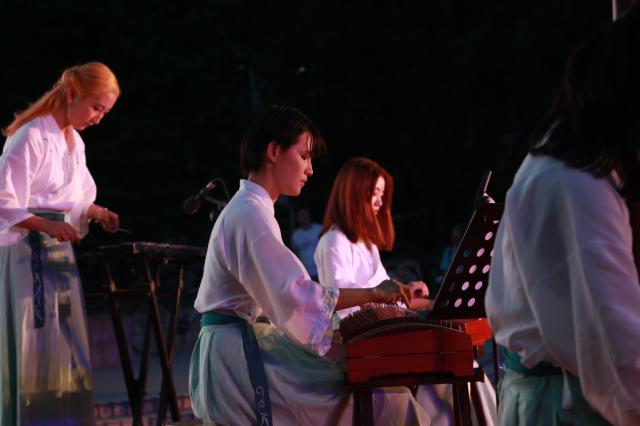 毕业生晚会分“前程似锦,且行且歌”“天涯此时、月共一轮”“桃李不言、润物无声”三个篇章,毕业生们通过合唱、舞蹈、民乐、朗诵等表演形式,表达了对未来的美好期待、对校园生活的依依不舍、对母校的深深感恩。