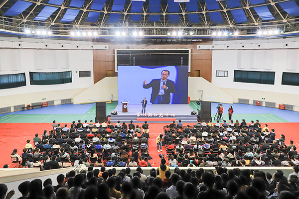 报告中,俞敏洪结合自身的成长经历、社会热点问题以及大量富含哲理的小故事,为师生们的人生布局“出谋划策”,赢得师生们多次热烈掌声。他认为把握大学生活要“葆有愉快的心境”,这样才能更好地专注于自身当下、专注于眼前世界的美好、专注于未来人生发展和布局;要“具有取得突破的能力”,有决心、有毅力、有勇气不断尝试创新、不断挑战探索、不断突破自我,让青春年华绽放出最动人的光彩。他希望同学们热爱生活、热爱学习、开阔胸襟、开拓视野,绘就人生大格局,成就人生新辉煌,迎接美好新未来,成长为社会主义建设者和接班人。