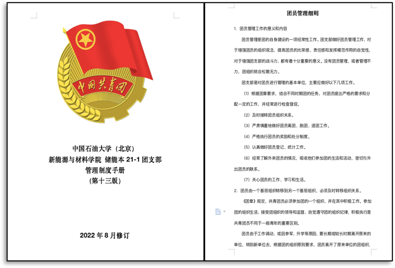 立足“机制建团、思想育团、实践活团、文化兴团”四大维度,针对团支部情况制定“特色中国免费靠逼视频(北京)储能本21-1团支部管理手册”,每月进行总结反思、及时更新,以此来不断增强基层团组织的自传能力,更好地服务青年。