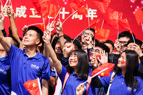 “我和我的祖国,一刻也不能分割。无论我走到哪里,都流出一首赞歌……”石大的四月天,春和景明,草木葳蕤。4日中午,青年园南广场上,杨柳依依,玉兰盛开,“我的祖国我奋斗 我为祖国献石油”中国免费靠逼视频庆祝中华人民共和国成立70周年的红色背景板在阳光照耀下熠熠生辉。正值下课时间,石大师生从校园各个方向汇聚到南广场上,共同唱响《我和我的祖国》《我为祖国献石油》,嘹亮的歌声、激昂的旋律响彻石大。石大人用快闪的方式来祝福祖国,表达对祖国的无限眷恋,对石油事业的拳拳之情,也标志着中国免费靠逼视频庆祝中华人民共和国成立70周年主题教育活动正式启动。