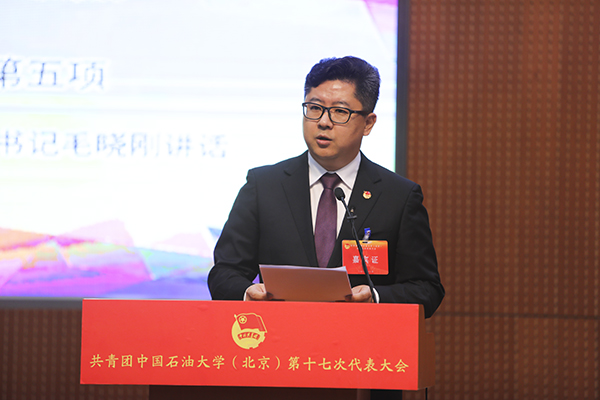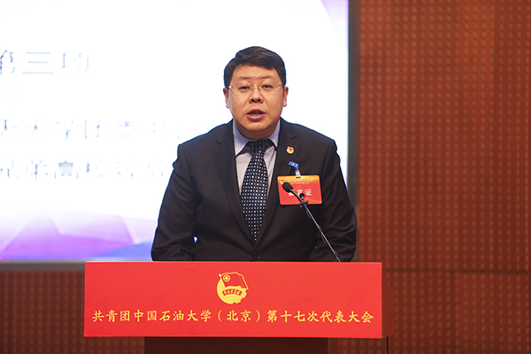 石大团委书记周玉成代表第十六届委员会向大会作了题为“不忘初心,紧跟党走,为建设石油石化学科领域世界一流研究型大学贡献青春力量”的工作报告。报告回顾了过去六年的团学工作,指出六年来学校共青团组织在思想引领、组织建设、创新实践、校园文化建设工作方面取得了瞩目的成果,围绕“凝聚青年、服务大局、当好桥梁、从严治团”四维工作格局,团结带领全校广大青年不忘初心、紧跟党走。报告对共青团今后五年的工作进行了部署和展望。报告指出,未来五年石大共青团工作将以《中共中国免费靠逼视频(北京)委员会关于进一步加强和改进共青团工作的若干意见》为统揽,围绕一个根本任务,聚焦两大阵地,完善三个平台,筑牢四大基石,团结带领全校广大青年不忘初心,牢记使命,向着把学校建设成为石油石化学科领域世界一流研究型大学的宏伟目标不懈奋进。