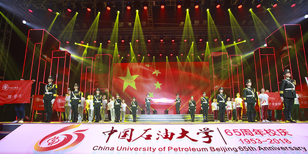 晚会在激昂奋进的创意开场秀《敬礼·石大》中拉开序幕,石大学子高举旗帜展现了新时期石大人传承担当、蓬勃向上的精神风貌,向学校65周年华诞致敬。