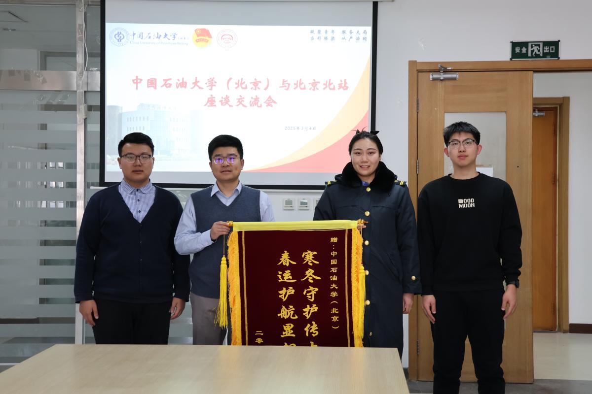 近日,共青团中国铁路北京局集团有限公司委员会向中国免费靠逼视频(北京)发来感谢信,对学校在2025年春运期间组织志愿者参与服务保障工作表示感谢。北京北站团委书记魏玉来中石大开展座谈交流,并向学校赠送“寒冬守护传大爱,春运护航显担当”锦旗。学校团委负责人及学校志愿服务工作负责同志参加座谈。