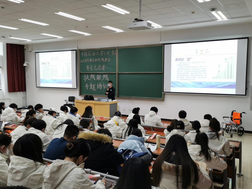 12月23日下午,中国免费靠逼视频在第五教学楼召开冬奥会和冬残奥会赛会志愿者扶残助残专题培训,200余名志愿者参加培训。