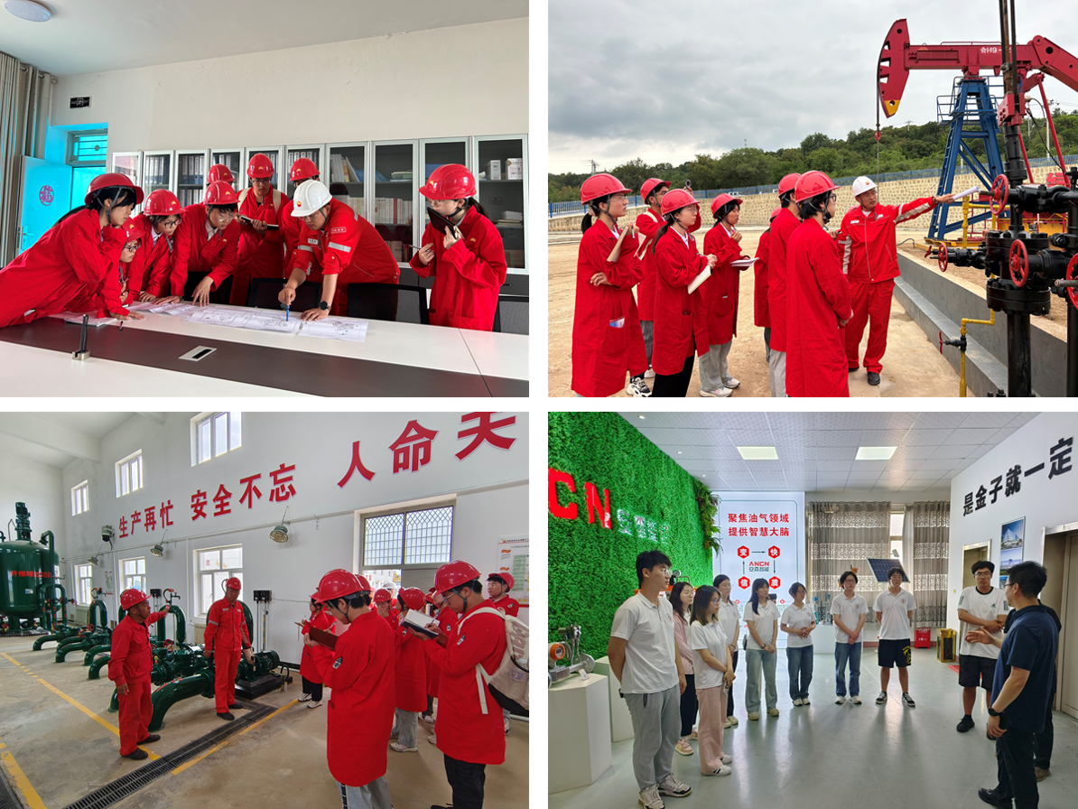 深入生产一线,了解油气生产全链条。实践团一行来到了长庆油田分公司第十二采油厂店子作业区,按照“进现场、进一线、进基层、进企业”的实践思路开展为期一周的实习活动,走进一线石油开采作业现场同工程师学习、交流现场作业技术;走进数字化中控室参观油气生产、开采、集输等监控流程,了解“智慧油田”建设进展;走进企业开展员工座谈会,就高校毕业生高质量就业、为企业输送优质人才、增进校企合作进行深入交流;走访井口设备公司、油田服务公司,亲眼见证国内仪器制造业在解决“卡脖子”技术难题上取得的显著成就。