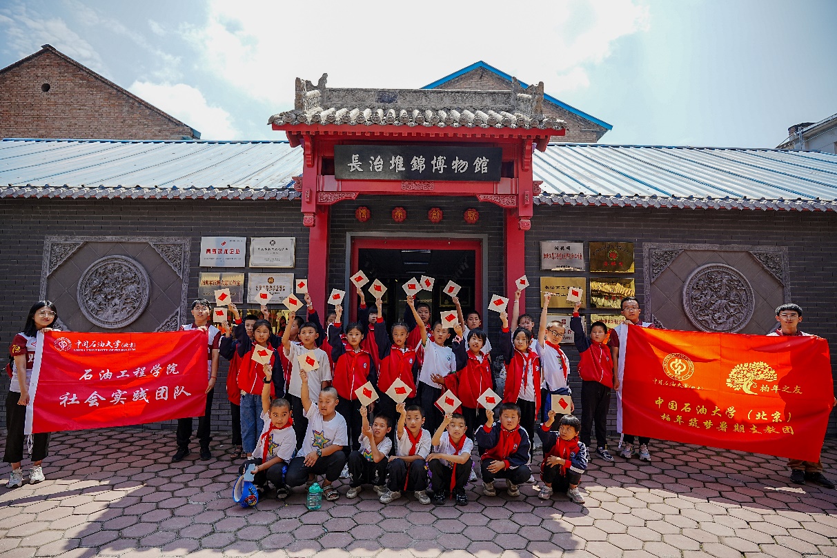 “双碳”时代服务队由石油工程学院博士研究生林子愉、裴雪皓、蔡玎宁、白文鹏,硕士研究生焦滨海、刘程郅、谭洪超,本科生张安迪、张文浩和学院油气田开发教师第二党支部组成。团队成员连续两年赴长治市,围绕“非遗助力乡村振兴”主题开展调研,深入挖掘实践地乡村振兴进程中非物质文化遗产保护传承的协同发展情况,提出的对策和建议被当地博物馆采纳。团队在当地小学举办两期暑期夏令营,涵盖育党苗、传非遗、助双碳等6大版块的近80场主题课后服务活动。为进一步整合优势资源,团队联合长治市教育局、科技局,发起组建“课程思政讲师团”,10所高校和科研院所的专家学者为长治市2000余名中小学生讲授云端科普课。