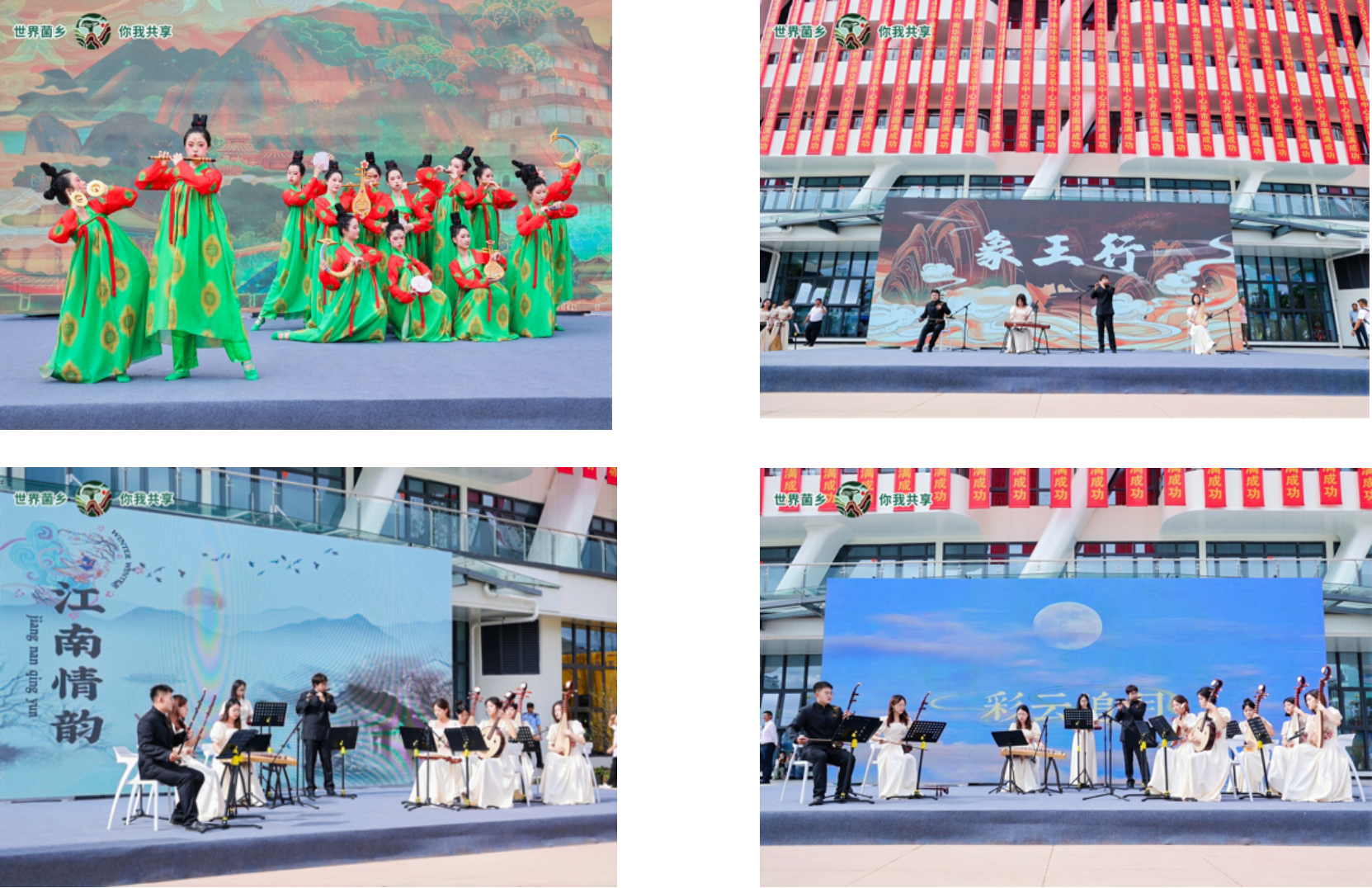 8月8日,在南华县第二十一届野生菌美食文化节启动仪式上,实践团为当地观众带来了极富民族特色的乐器演奏《彩云追月》《象王行》《花好月圆》等曲目,中国舞团演绎的《唐宫夜宴》赢得了主办方和当地群众的喜爱。
