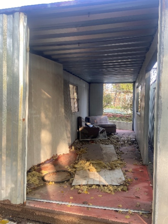 我校在校园环境治理工作中,发现有一批活动板房等物品放置于东校园东南角(体育场南侧)道路上,具体现状如下:
