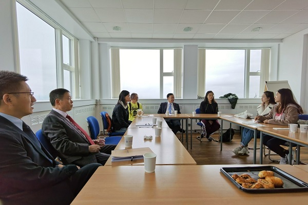 张来斌一行与在邓迪大学和里斯本高等技术学院学习的石大学生座谈交流。张来斌详细询问了同学们的学习生活情况,勉励同学们扎实学习、获得优异成绩,努力为母校争光,并双方合作发挥桥梁作用。此外,张来斌一行与多位有意来石大工作的应届博士生交流,并介绍了学校人才引进政策和职业发展前途。