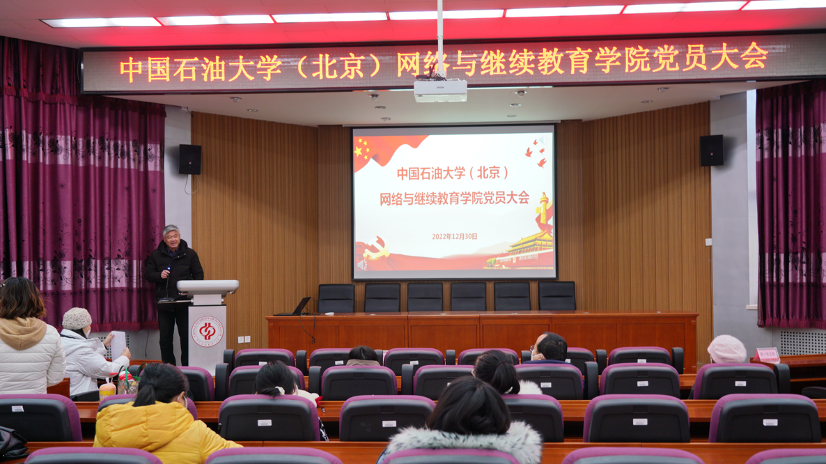 2022年12月30日上午8点半,在学院培训基地第一报告厅,网络与继续教育学院召开全体党员大会,圆满完成党总支换届选举工作。