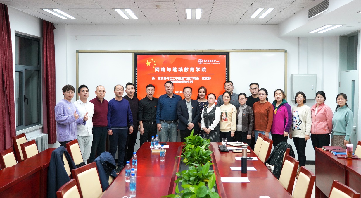 2021年12月2日下午,网络与继续教育学院第一党支部与石工学院油气田开发第一党支部在东教802会议室联合开展12月份党支部组织生活和政治理论学习,会议由网络与继续教育学院第一党支部组织委员张敏同志主持,共计25名党员和积极分子参加。