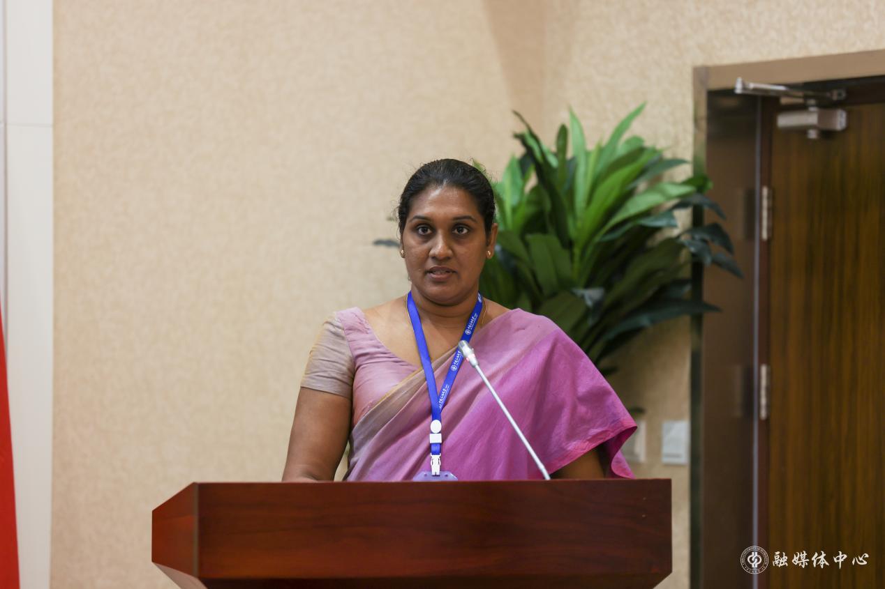 斯里兰卡电力和能源部高级助理秘书乌达里·兰卡·加亚桑达拉女士作为学员代表发言,她感谢中国政府举办此次研修班,提供分享知识、经验和创新解决方案的平台。她认为绿色发展是一个趋势性的、及时的话题,希望利用这次宝贵的机会学习绿色能源概念、知识、政策和实践案例。