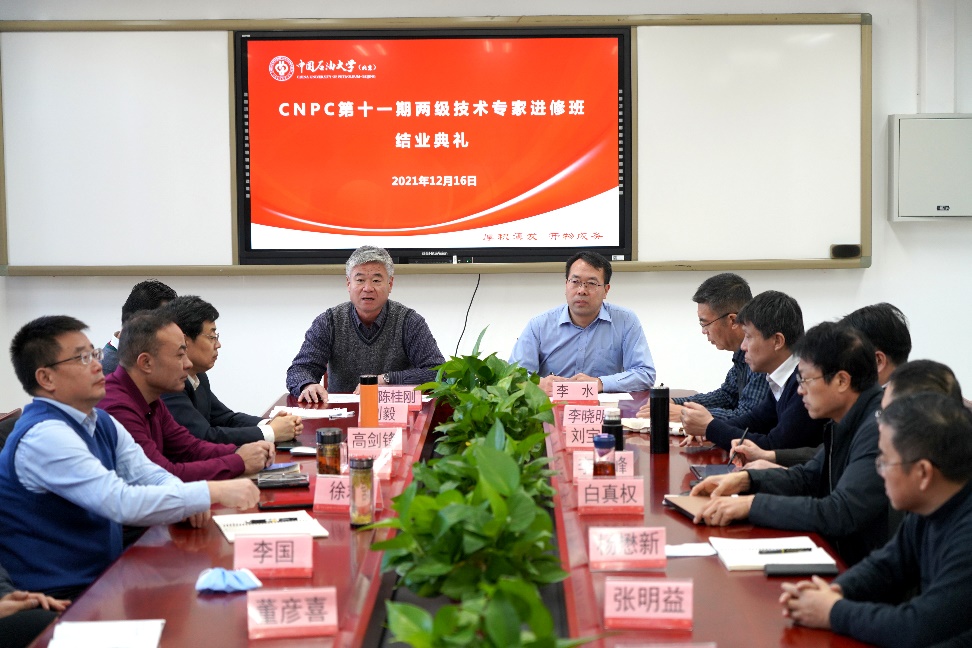 2021年12月16日,由中国免费靠逼视频(北京)网络与继续教育学院承办的“中国石油天然气集团有限公司第十一期两级技术专家进修班”在东教楼802举行结业典礼,中国免费靠逼视频(北京)网络与继续教育学院院长陈桂刚出席结业典礼并讲话,结业典礼由网络与继续教育学院副院长李水主持。