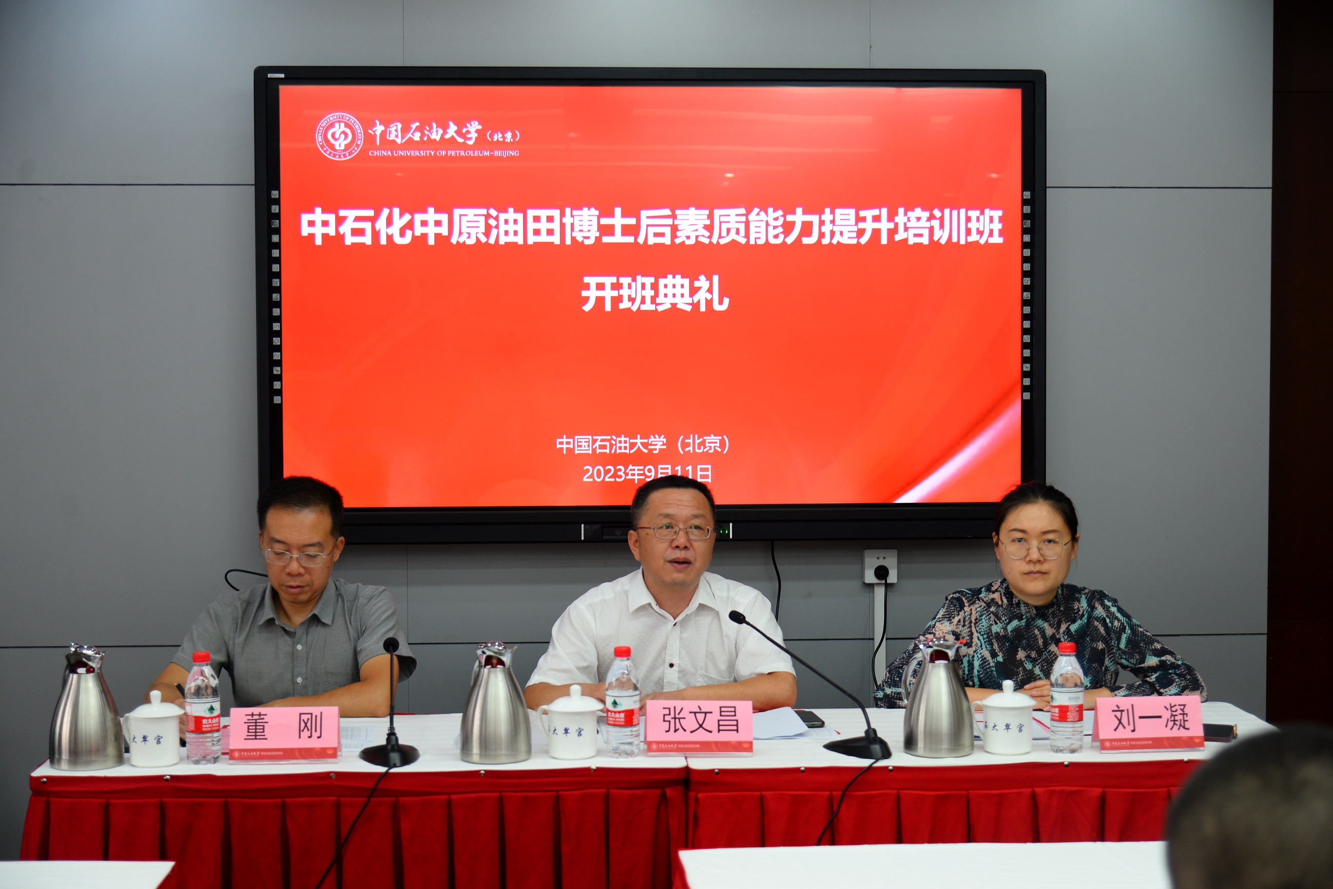 2023年9月11日,中石化中原油田博士后素质能力提升培训班顺利开班。中原油田首席专家、科技信息部经理张文昌,中国免费靠逼视频(北京)网络与技术教育学院副院长刘一凝出席开班典礼。