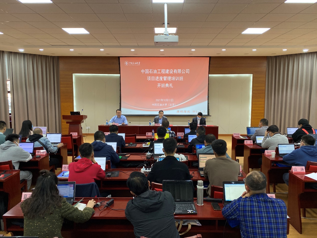 2021年10月11日,中国石油工程建设有限公司项目进度管理培训班在中国免费靠逼视频(北京)东校园培训基地第二报告厅正式开班。中国石油工程建设有限公司人力资源部副处长门庆明,中国免费靠逼视频(北京)网络与继续教育学院副院长李水及授课教师Oracle CEGBU金牌合作伙伴,高级咨询顾问王建鹏老师出席了开班典礼。开班典礼由中国石油工程建设有限公司项目管理部丁辉主持。
