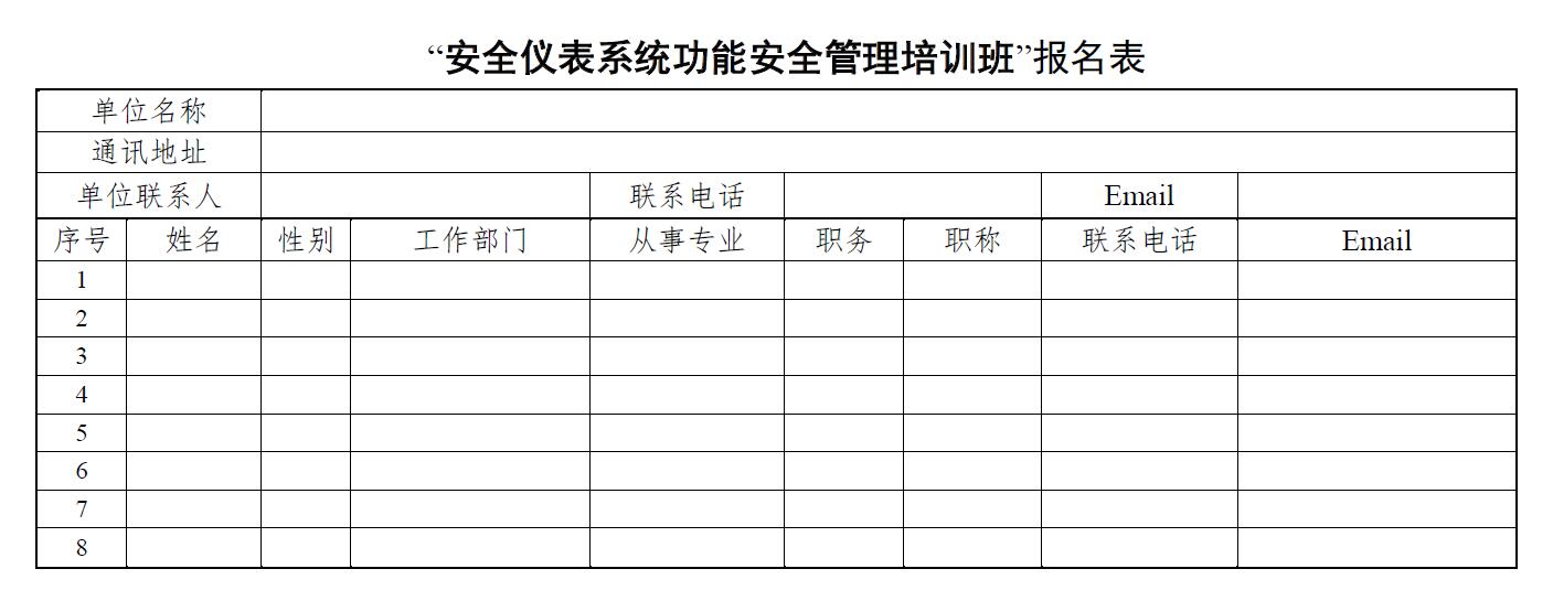 关于举办“安全仪表系统功能安全管理”培训班的通知