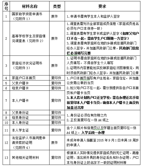 4.所有材料必须为当年出具,往年准备过的助学贷款申请材料无效;