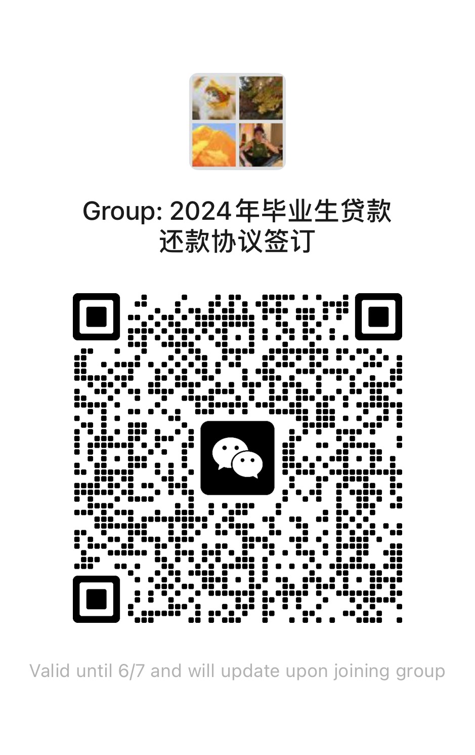 4.在6月5日前扫码添加“2024届毕业生贷款还款协议签订”微信群。